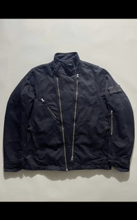 8/10 condition Size M Hailing from AW11, when Errolson was still directly involved in the design of the Shadow Project subline and it’s PARSEC system. The Cyclone jacket is one of the best pieces of outerwear to come out of the collection. Constructed from a substantial and textured, Teflon bonded David-T fabric with a quilted internal liner. This jacket is an excellent display of Stone Islands fabric research and expertise. It is rendered in a rider jacket silhouette with a secondary zippered compartment which opens to reveal additional pockets as well as a secondary badge placement. Also features an alternate zippered chest pocket, arm pocket and hand pockets.