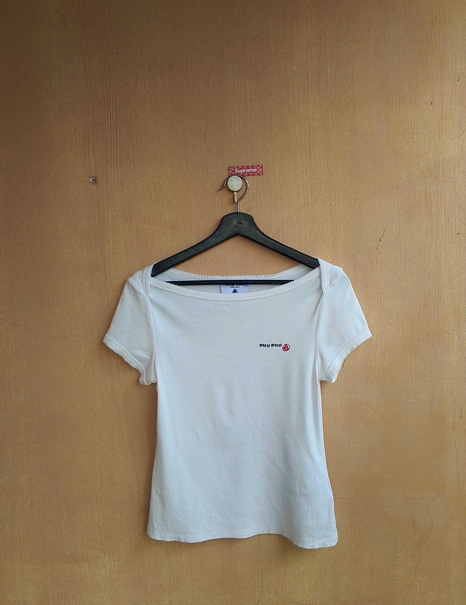 Brand: Miu Miu x Petit Bateau Armpit to armpit: 16 Shoulder to length: 21.5 Best fit to Small Excellent Condition Color Rate: 10/10 We accept PAYPAL only. We accept WORLDWIDE SHIPPING. Shipping: DHL EXPRESS SHIPPING Estimated: (1-6 days delivery time depend on location ) Please check all pictures & ask questions for any Additional info before purchase. Some Items are USED, VINTAGE & PRELOVE items. Donts Expect it to be like NEW condition. Pls give your phone number after purchase. Very low express shipping all over the world. Don't forget to check out my store for more great stuff. Thank you so much for your visit!!