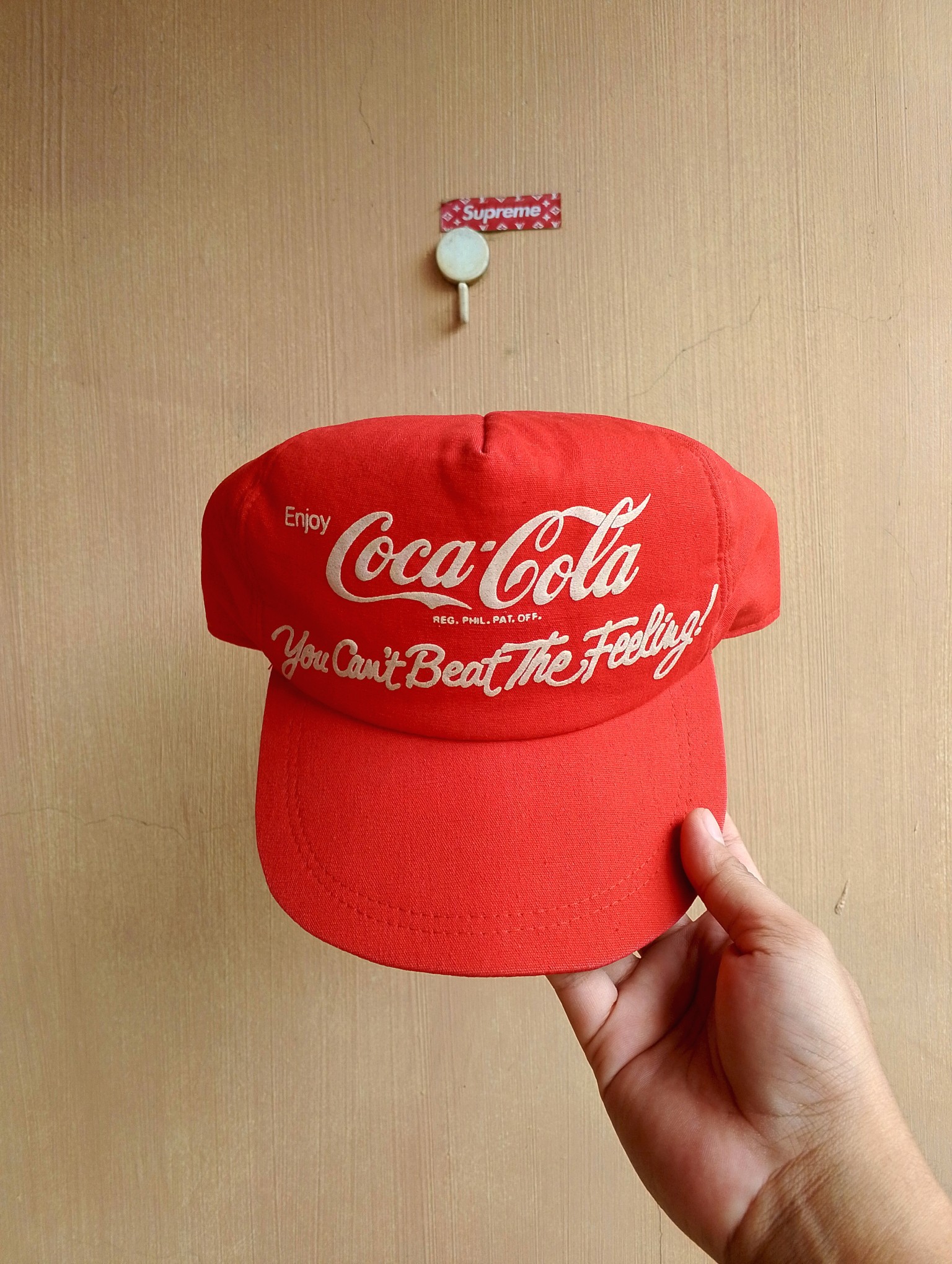 1988 Rare Vintage Coca Cola hat Philippines Reg phil pat off you can't beat the feeling slogan