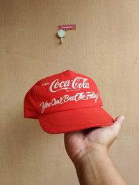 1988 Rare Vintage Coca Cola hat Philippines Reg phil pat off you can't beat the feeling slogan Brand: Coca cola 6 HOLE SNAP / ONE SIZE FITS ALL Excellent Condition 9.9/10 Color Rate: 10/10 We accept PAYPAL only. We accept WORLDWIDE SHIPPING. Shipping: DHL EXPRESS SHIPPING Estimated: (1-6 days delivery time depend on location ) Please check all pictures & ask questions for any Additional info before purchase. Some Items are USED, VINTAGE & PRELOVE items. Donts Expect it to be like NEW condition. Pls give your phone number after purchase. Very low express shipping all over the world. Don't forget to check out my store for more great stuff. Thank you so much for your visit!!