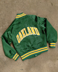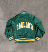 1989 Chalkline Oakland Athletics Arch Spellout vintage satin jacket fit to 6yrs+9yrs old Tag: Chalkline // Size: Small Youth // 8 yrs old Armpit to armpit: 16 Shoulder to length: 18 Excellent Condition Color Rate: 9.9/10 We accept PAYPAL only. We accept WORLDWIDE SHIPPING. Shipping: DHL EXPRESS SHIPPING Estimated: (1-6 days delivery time depend on location ) Please check all pictures & ask questions for any Additional info before purchase. Some Items are USED, VINTAGE & PRELOVE items. Donts Expect it to be like NEW condition. Pls give your phone number after purchase. Very low express shipping all over the world. Don't forget to check out my store for more great stuff. Thank you so much for your visit!!