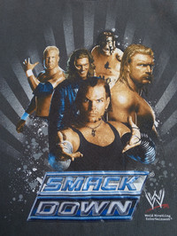 2008 WWE Smackdown wrestling tee YXL frame / Adult best fit to S-M Tag: World Wrestling Entertainment by hybrid tees Armpit to armpit: 20.5 Shoulder to length: 26.5 Excellent Condition Color Rate: 9.5/10 We accept PAYPAL only. We accept WORLDWIDE SHIPPING. Shipping: DHL EXPRESS SHIPPING Estimated: (1-6 days delivery time depend on location ) Please check all pictures & ask questions for any Additional info before purchase. Some Items are USED, VINTAGE & PRELOVE items. Donts Expect it to be like NEW condition. Pls give your phone number after purchase. Very low express shipping all over the world. Don't forget to check out my store for more great stuff. Thank you so much for your visit!!