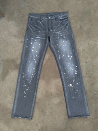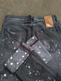 HE75 Japanese brand Selvedge Paint splatter denim pants Quality denim make by: Hardly Ever's 75 waistline: 34 on tape measure/ 36 on frame length: 44 / inseam: 34 / leg op: 8 Excellent Condition Color Rate: 9.9/10 We accept PAYPAL only. We accept WORLDWIDE SHIPPING. Shipping: DHL EXPRESS SHIPPING Estimated: (1-6 days delivery time depend on location ) Please check all pictures & ask questions for any Additional info before purchase. Some Items are USED, VINTAGE & PRELOVE items. Donts Expect it to be like NEW condition. Pls give your phone number after purchase. Very low express shipping all over the world. Don't forget to check out my store for more great stuff. Thank you so much for your visit!!