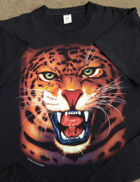 Vintage wild cat jaguar big print glow in the dark animal tee Single stitches allover Tag: Sheriff tag Armpit to armpit: 23 Shoulder to length: 27.5 Excellent Condition Color Rate: 9.8/10 We accept PAYPAL only. We accept WORLDWIDE SHIPPING. Shipping: DHL EXPRESS SHIPPING Estimated: (1-6 days delivery time depend on location ) Please check all pictures & ask questions for any Additional info before purchase. Some Items are USED, VINTAGE & PRELOVE items. Donts Expect it to be like NEW condition. Pls give your phone number after purchase. Very low express shipping all over the world. Don't forget to check out my store for more great stuff. Thank you so much for your visit!!