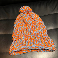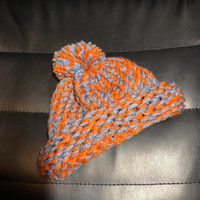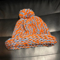 Orange/blue Crotchet Beanie Handmade Fits infants/toddlers & small children Last photo is for reference of other hats availiable #crotchet #beanie #kids #winter #puff