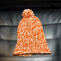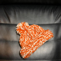 Orange/White Crotchet Beanie Handmade for infants/toddlers & small children Last photo is for reference of other hats available #crotchet #beanie #kids #winter #puff