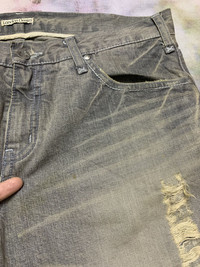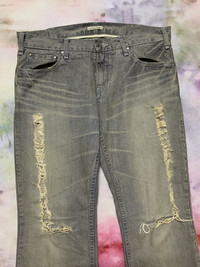 BRAND TAG: LONDON DENIM Distressed condition Sizes is vary, please read measurement and compare. Measurement lying flat approx. : Waist: 34” Inseam: 29” Outseam/full length: 39.5” Front rise: 10” Thigh: 10.5” Knee: 8.5” Leg opening: 10”