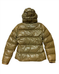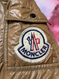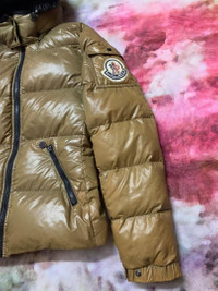 Authentic Moncler Women's real down jacket with removable hood Condition: Good used 8/10 with sun faded and mild stains on sleeve. -Sizes is vary, refer measurement details. -Cartoon label missing. 100% authentic Features: LAMPO zip made in Italy and FIOCCHI snap button. Moncler big felt badge on the left sleeve Removable hood