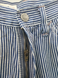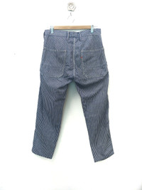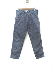 Brand Tag: 45rpm COLOUR: Hickory Stripes CONDITION: (1) Good vintage condition. (2) Sizes is vary, so please refer to measurement details (3) Slightly faded and few marks. *Please refer pictures for details *Vintage/used items are not new and it may have imperfections. MEASUREMENT (Inches) Size On Tag: 30 Waist : 29" Inseam : 24.5" Outseam: 35" Rise: 11" Thigh: 10" Leg opening: 6.8" DETAILS Material: Refer wash tag picture Made In: Japan SHIPPING Shipping cost is usd 20 via registered airmail by DHL EXPRESS with tracking number. Transit time can take 3-6 DAYS to reach destination after dispatched. PAYMENT -Accept PAYPAL Only **PLEASE leave your available PHONE/MOBILE NUMBER for shipping purpose (important). -------------------------------------------------------------- REMINDER: (1)Please pay attention to measurement are fit for you before purchase it !! (2) No returns, exchanges or refunds. All sales are final. (2) Please inform me for any enquiries! Thanks !