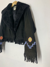 Designer - Louis Feraud Cropped Leather Native Navajo Jacket