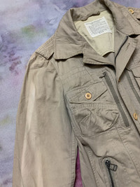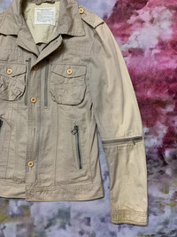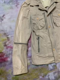 Good used 8.5/10 with sun faded and stains on sleeve/cuffs.