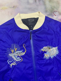 Manastash Sukajan. The color is blue. Size notation is men's L size. The front zip is a waterproof zip. The outdoor and American casual are well combined. ・Material: Outer fabric, Lining: 100% polyester a ・Size: Width: Approx. 56 cm Length: Approx. 65 cm Shoulder width: Raglan