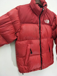 FOLLOWING Description Built for mountain- and city-life, this retro Nuptse jacket that has a boxy silhouette, original shiny ripstop fabric, iconic oversize baffles and stowable hood will keep you warm and dry when it gets cold and wet. FEATURES Classic, down insulated jacket with high-loft baffles and a boxy silhouette Standard fit Inspired by the iconic design lines of our 1996 Nuptse Jacket Original shiny ripstop fabric with DWR finish Oversize baffles Stowable hood packs into collar Stows in hand pocket Internal, secure-zip pocket Exposed, VISLON®, two-way center front zip Adjustable Velcro® cuff tabs Bungee cinch at hem Embroidered, oversize logo on left chest and back-center shoulder Good vintage condition 9/10 Sizes is vary, please refer measurement details. Size on tag: S Shipping express DHL worldwide All sales are final. No trades, no returns, no cancel. Thanks!