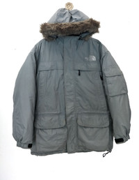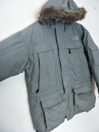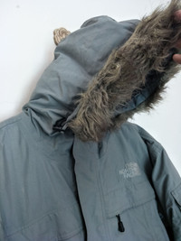 Vtg TNF Puffer Down Jacket MA-1 Faux Faur Hoodie