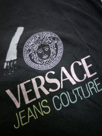 VERSACE JEANS COUTURE Condition: Good vintage 7/10 with fairly faded and upper tag missing. Wrinkled from storage but can be easily steamed out. Size on tag: N/A Pit to pit: 20.5" Length: 26" Shoulder to shoulder: 21" Sleeve length: 7.5" -Cotton -Made In Italy Process 1-3 days. Shipping by DHL EXPRESS 3-6 days reach. *No trades, no returns, all sales are final.