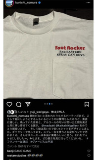 Nomura Kunichi Madsaki Tee Kaikai Kiki Foot Locker Mild Bunch This T-shirt was designed by Kunichi Nomura. The back of the T-shirt features MADSAKI‘s right sneaker, which has been coated with residue from spray cans. Size L 22.5/30.5 Follow me on ig: @nutingbut_vintage