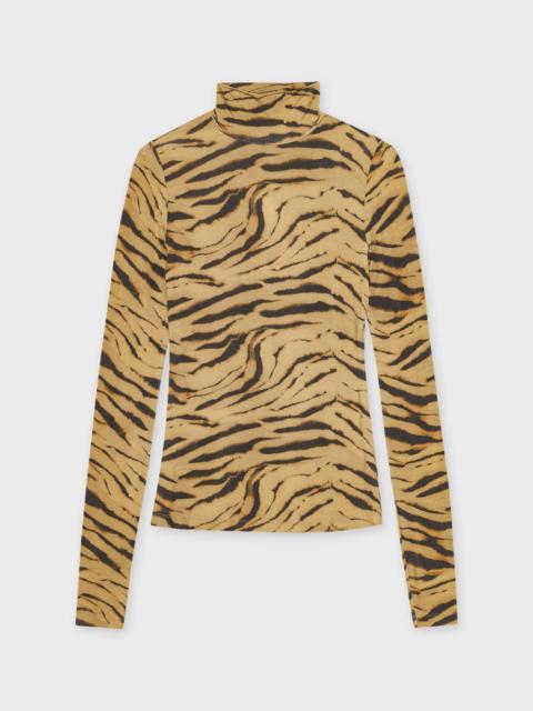 Top Printed Shiny Jersey Turtleneck Khaki