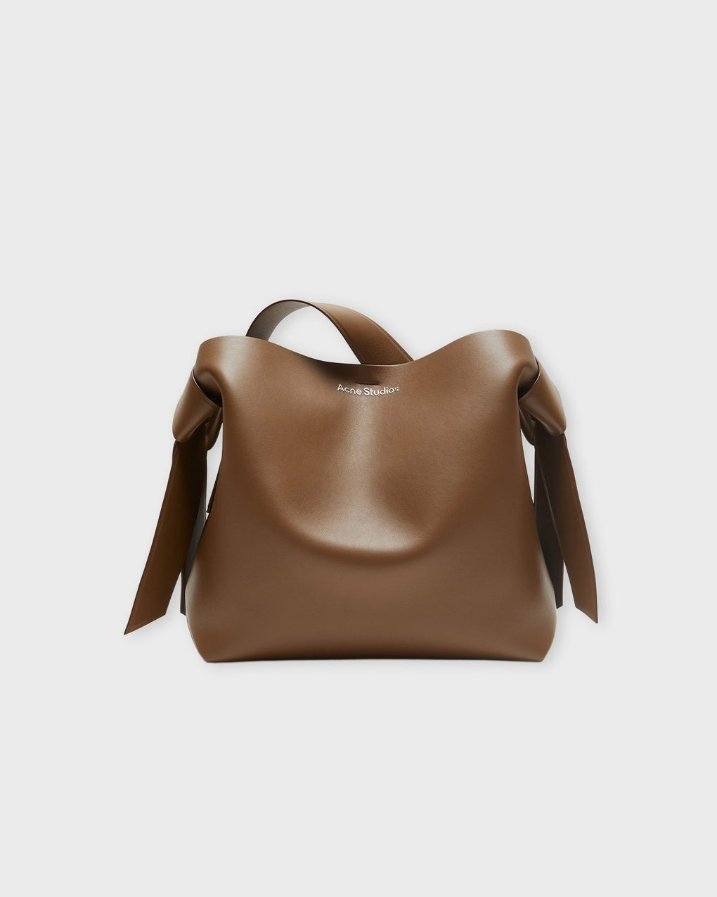 Bag Musubi Midi New R from Acne Studios. This midi shoulder bag is crafted from soft Italian leather and adorned with the signature Musubi knots on the sides, inspired by traditional Japanese obi sashes. The sleek silhouette conceals a thoughtfully designed interior with a central zippered compartment for secure storage. The bag closes with a discreet magnetic fastening. Measurements: 35 cm x 35 cm x 16 cm. Size and Fit - 35 cm x 35 cm x 16 cm. Specification - Article number - ID: 176604-086 - Brand: Acne Studios - Color: Camel