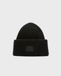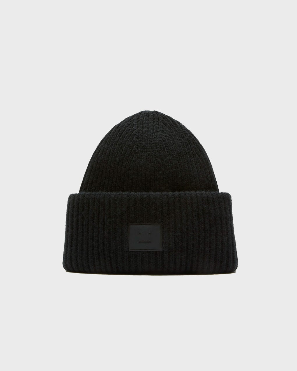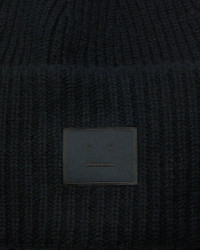 Beanie Large Face Logo by Acne Studios. A knitted beanie in exclusive yak yarn that combines timeless design with high comfort. It is chunky rib-knitted and features a folded edge that gives it a classic silhouette, while the large embroidered Face logo patch at the front adds a distinctive and characteristic detail. Due to the natural properties of the yak yarn, each beanie has a unique shade and may vary slightly in color, making every piece special. Handle with care to preserve its original appearance and quality. Size and Fit - Fits true to size, choose your usual size Specification - Article number - ID: 176577-000 - Brand: Acne Studios - Color: Black