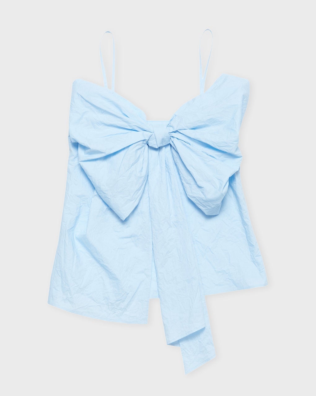 Blouse Bow Strap from Acne Studios – A trendy top with a playful design. Made from a lightweight and crisp cotton material, it offers an airy and comfortable feel. Designed for a relaxed fit, featuring a large bow at the front that creates a unique silhouette. The top has thin shoulder straps for an elegant and feminine touch. Size and Fit - Fits true to size, choose your usual size - The model is 172 cm tall and is wearing size 36 Specification - Article number - ID: 175296-020 - Brand: Acne Studios - Color: Light blue - Washing Instructions: Handwash - Made of: 100% Cotton