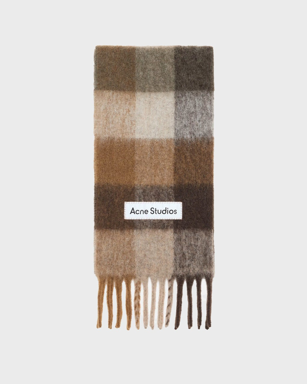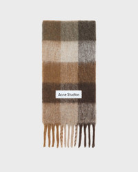Check Fringe Scarf by Acne Studios. A sleek scarf in a mohair blend with a classic checked pattern, fringed ends, and an embroidered Acne Studios logo. Made from carefully selected yarns that offer both warmth and character, a stylish accessory for the colder seasons. Size and Fit - 28 x 250 cm Specification - Article number - ID: 176590-083 - Brand: Acne Studios - Color: Brown