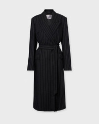 Coat Pinstripe Wool from Acne Studios. A trendy coat with a boxy, structured fit. The coat features a double-breasted silhouette and a waist belt that ties. Made from 100% wool. Size and Fit - Fits true to size, choose your usual size - The model is 176 cm tall and is wearing size 36 Specification - Article number - ID: 176608-000 - Brand: Acne Studios - Color: Black - Washing Instructions: Dry clean - Made of: 100% Wool