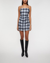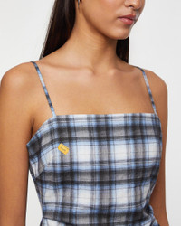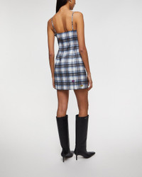 Dress Strap Check from Acne Studios. A trendy dress featuring a unique optic flannel check pattern and subtle branded sticker details. The design is fitted with adjustable straps and a flattering mid-thigh length. Size and Fit - Fits true to size, choose your usual size - The model is 177 cm tall and is wearing size 36 Specification - Article number - ID: 176381-129 - Brand: Acne Studios - Color: Black/blue - Washing Instructions: Hand wash - Made of: 58% Linen, 39% Viscose, 3% Elastane