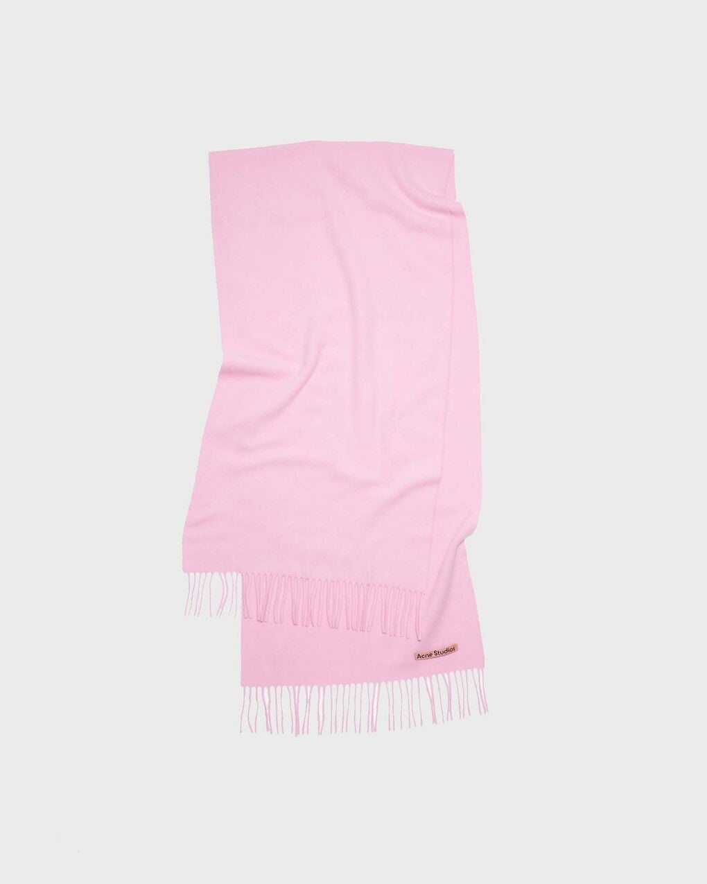 Scarf FN-UX-SCAR000115 from Acne Studios. The Soft scarf in a modern checkered pattern with fringed edges. The scarf has an Acne Studios logo at the bottom and is made from material mix of soft alpaca and wool. Size and Fit - L: 250 cm x W: 28 cm Specification - Article number - ID: 171103-062 - Brand: Acne Studios - Color: Pink