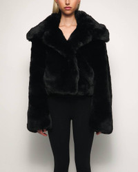 Faux Fur Collar Jacket from Acne Studios. Trendy jacket in thick faux fur designed with a cropped fit and an oversized collar. The jacket features wide, long sleeves and fastens with a hook at the front. It is detailed with side pockets. This is a runway piece. Size and Fit - Fits true to size, choose your usual size - The model is 176 cm tall and is wearing size 36 Specification - Article number - ID: 174083-000 - Brand: Acne Studios - Color: Black - Washing Instructions: Dry clean - Made of: 100% Faux Fur (100% Polyester