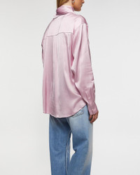 Shirt Layered Satin Scarf by Acne Studios. A trendy shirt designed with a loose, relaxed fit, featuring a classic shirt collar and front button closure. It is detailed with a unique scarf element that ties around the neck. The shirt includes a chest pocket and long sleeves with cuffs. Size and Fit - Fits true to size, choose your usual size - The model is 172 cm tall and is wearing size 36 Specification - Article number - ID: 176570-062 - Brand: Acne Studios - Color: Pink - Washing Instructions: Dry clean - Made of: 51% Viscose, 46% Preferred viscose, 3% Elastane