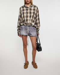 Shorts L’Oeil Denim Printed from Acne Studios. Shorts made from 100% organic cotton, featuring a denim-inspired trompe l’oeil print. Designed with a relaxed silhouette, elasticated waist and hem, side seam pockets, and Acne Studios logo tab at the back. A playful yet comfortable style with modern volume. The product is under the W Sustain category as it is made of sustainable materials. Size and Fit - Fits true to size, choose your usual size Specification - Article number - ID: 176383-091 - Brand: Acne Studios - Color: Grey - Washing Instructions: Machine wash - Made of: 100% Organic Cotton