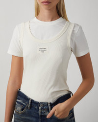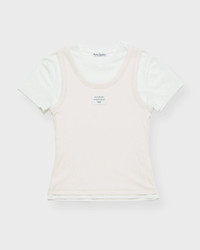 T-shirt FN-WN-TSHI000709 from Acne Studios. This layered T-shirt from Acne Studios features a logo label at the front and is constructed with a fitted T-shirt and tank top for a modern, dimensional look. Designed with a fitted silhouette and a classic crew neckline. Made from organically grown cotton with a soft, stretchy feel. Size and Fit - Fits true to size, choose your usual size - The model is 175 cm tall and is wearing size S Specification - Article number - ID: 177746-011 - Brand: Acne Studios - Color: Offwhite - Washing Instructions: Machine wash at 30 degrees with similar colors, wash inside out - Made of: 90% cotton, 10% elastane, Contrast: 96% cotton, 4% elastane