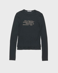 Long Sleeve Layered T-shirt by Acne Studios. This layered T-shirt features a tank top over a long-sleeve underlayer and is adorned with a seasonal fairytale logo on the front. The T-shirt has a fitted silhouette and hip-length cut, making it both stylish and comfortable. Size and Fit - Fits true to size, choose your usual size Specification - Article number - ID: 176586-000 - Brand: Acne Studios - Color: Black - Washing Instructions: Machine wash - Made of: 96% Cotton, 4% Elastane