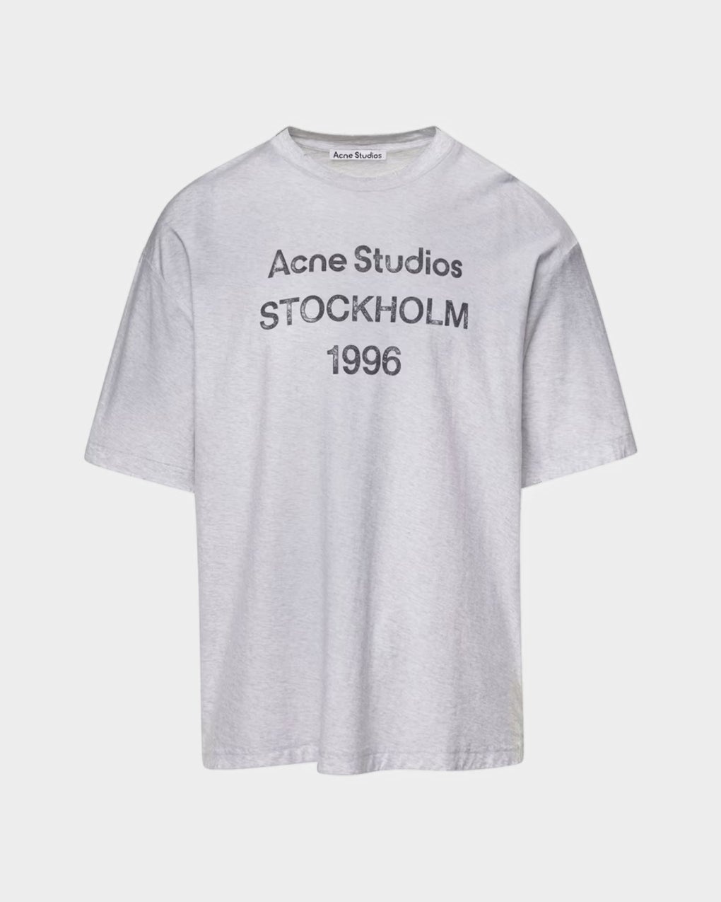 T-shirts Relaxed Logo from Acne Studios. Trendy faded t-shirt with Acne Studios 1996 logo on the front. The t-shirt has a sprayed finish and is detailed with rips on the neckline, cuffs and hem. Relaxed, unisex fit. Size and Fit - Fits true to size, choose your usual size - The model is 178 cm tall and is wearing a size small Specification - Article number - ID: 172636-507 - Brand: Acne Studios - Color: Grey melange - Washing Instructions: Machine wash - Made of: 100% Cotton