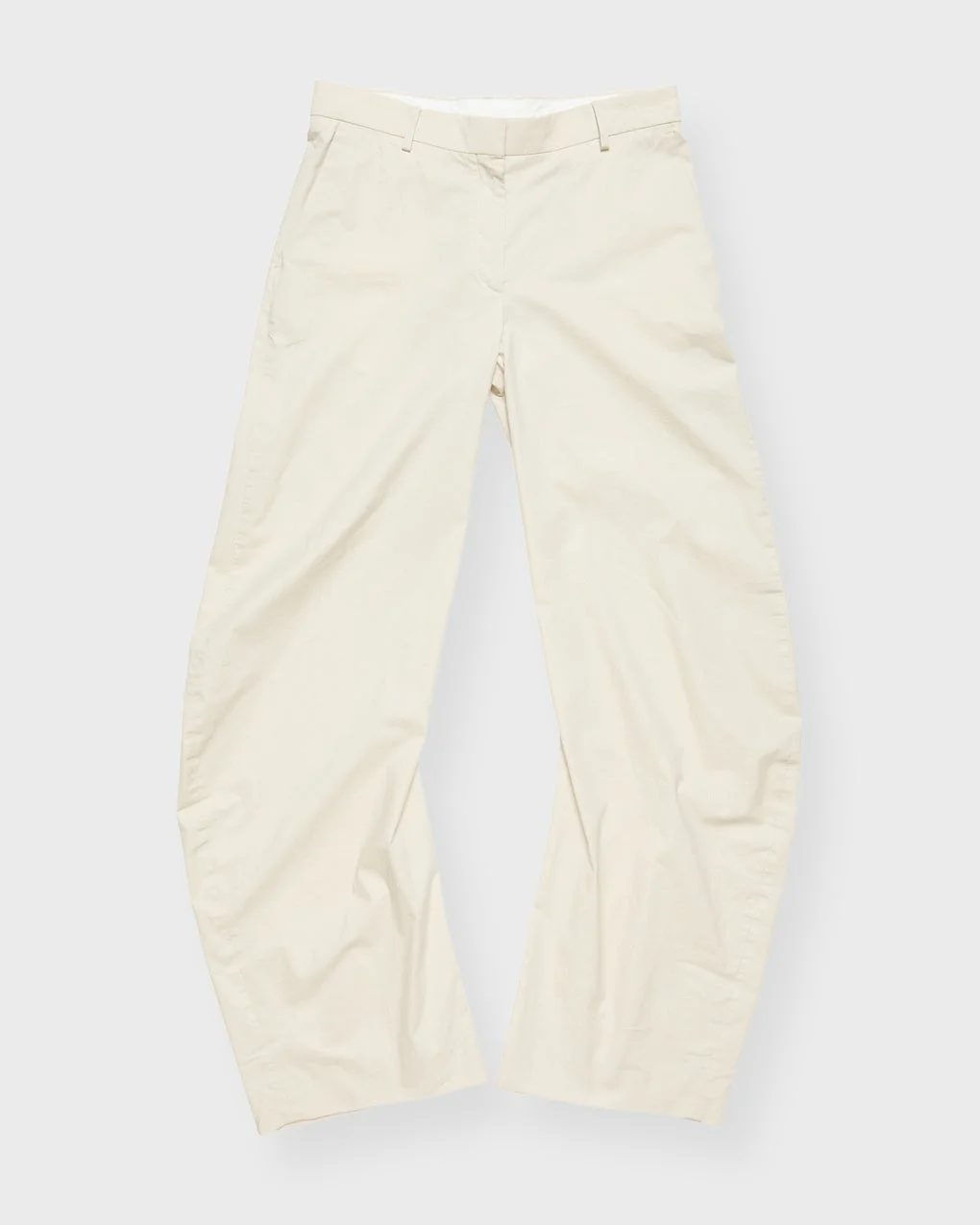 Trousers Cargo Barrel from Acne Studios are modern trousers with a distinctive barrel silhouette. Designed with a structured waist, wide legs and a contemporary fit that brings a directional edge to everyday dressing. Size and Fit - Fits true to size, choose your usual size - The model is 172 cm tall and is wearing size 36 Specification - Article number - ID: 177751-018 - Brand: Acne Studios - Color: Ljusbeige - Washing Instructions: Dry clean - Made of: Cotton