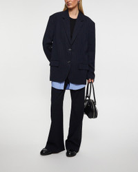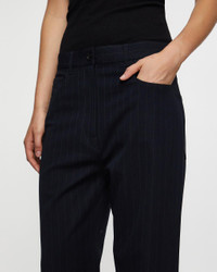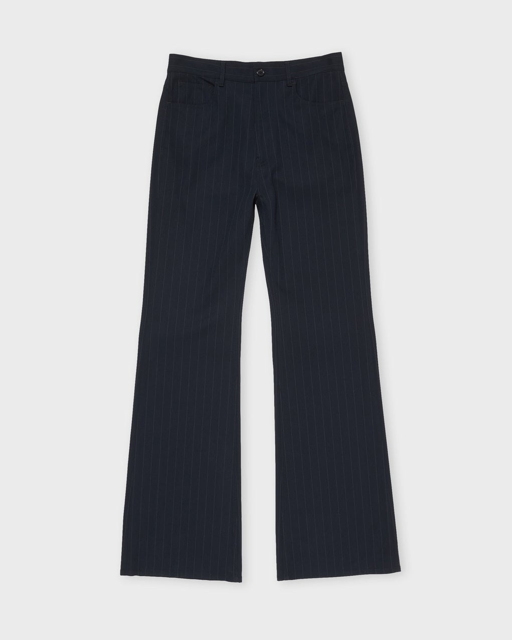 Trousers Fluid Pinstripe by Acne Studios. Tailored trousers with an elegant pinstripe pattern, crafted from a soft and fluid fabric. The design features a regular fit with a mid-rise waist and straight, relaxed legs that create a modern silhouette. Size and Fit - Fits true to size, choose your usual size - The model is 172 cm tall and is wearing size 36 Specification - Article number - ID: 176584-256 - Brand: Acne Studios - Color: Navy - Washing Instructions: Dry clean - Made of: 97% Viscose, 3% Elastane
