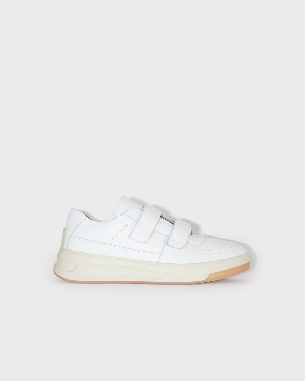 Velcro Strap Sneakers from Acne Studios. Trendy sneakers with Velcro closure. Made of high-quality leather, these sneakers are both durable and luxurious. The round toe design provides a comfortable fit. The Velcro closure ensures a secure fit and makes it easy to slip the shoes on and off. Size and Fit - Fits true to size, choose your usual size Specification - Article number - ID: 170800-010 - Brand: Acne Studios - Color: White