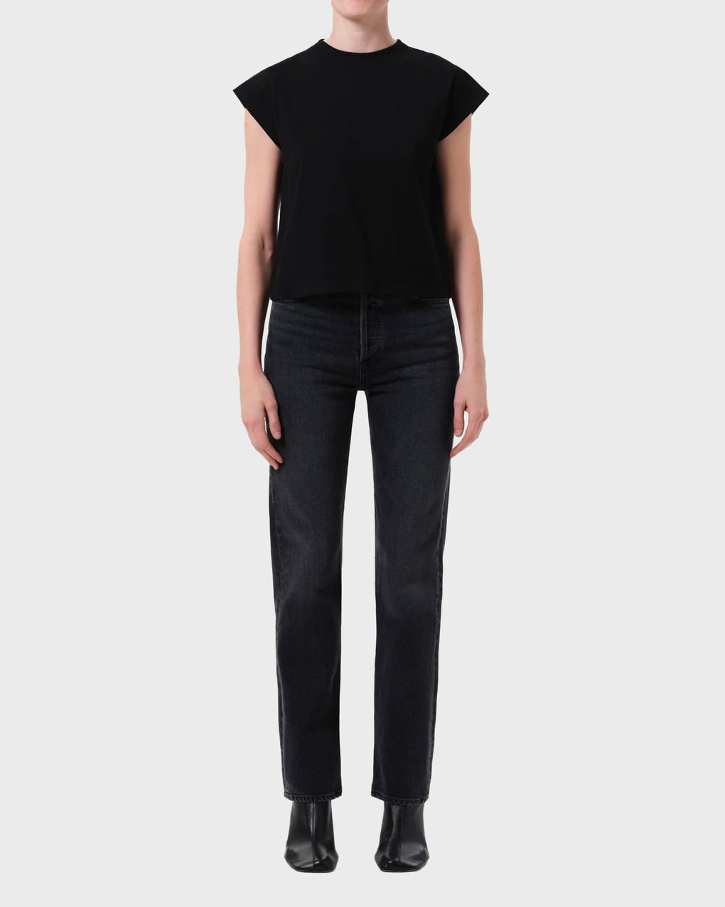 Jeans 90'S Pinch Waist Long High Rise Straight in Radius from Agolde. These jeans offer a vintage-inspired silhouette with a modern touch. Made from washed medium-black denim with subtle fading and whiskering, they are crafted from heavyweight stretch denim that combines soft structure with lasting comfort. The high waist and straight legs create a long, slim, and elegant silhouette. Size and Fit - Fits true to size, choose your usual size - The model is 175 cm tall and is wearing size 27 Specification - Article number - ID: 177005-523 - Brand: Agolde - Color: Washed black - Washing Instructions: Machine wash cold inside out with like colors. Do no bleach.Tumble dry low - Made of: 99% Regenerative cotton, 1% Elastane