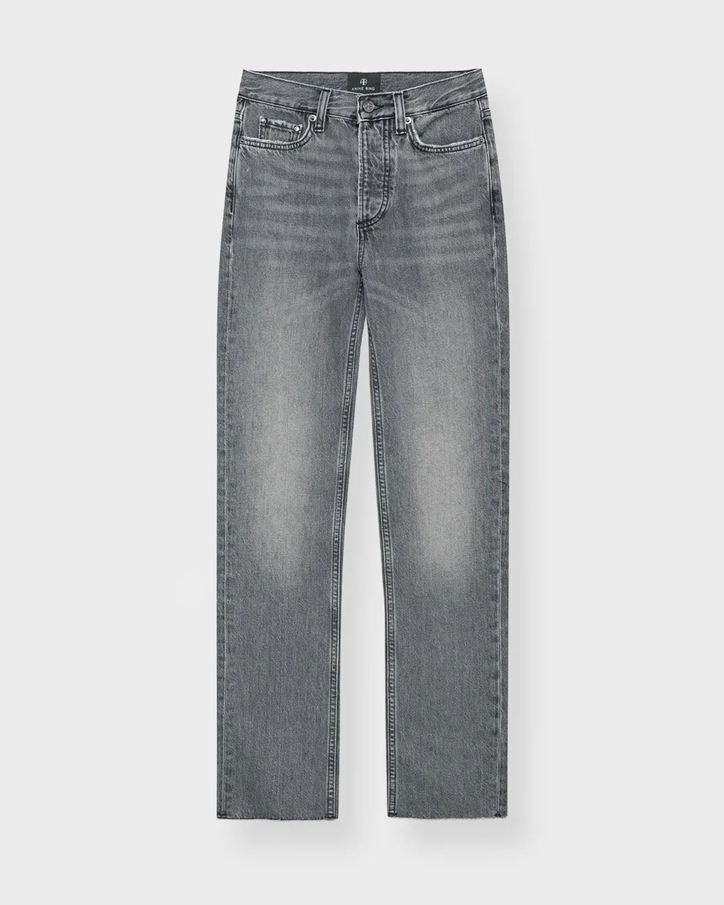 Jeans Bruno Ash Grey from Anine Bing. The Bruno Jean combines timeless denim culture med en modern Wakakuu-attityd. Crafted in midweight regenerative cotton denim, den ash grey wash ger en snygg vintage feel utan att tumma pa premiumkanslan. The high-rise fit och straight leg skapar en flattering, elongating silhouette, medan det raa fallen adderar en contemporary edge. Size and Fit - Fits true to size, choose your usual size - The model is 176 cm tall and is wearing size 27 Specification - Article number - ID: 176939-633 - Brand: Anine Bing - Color: Dark grey melange - Washing Instructions: Machine wash separately - Made of: 100% Regenerative Cotton