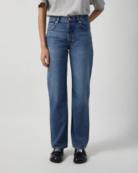 Jeans Gavin Long Mosaic Blue from Anine Bing. Straight-leg jeans crafted from a soft yet sturdy denim with a smooth texture. Designed with a high waist, belt loops, optical creases, and a classic 5-pocket construction. Finished with a button-fly closure and a subtle label badge at the waistband for a timeless, well-crafted look. Size and Fit - Fits true to size, choose your usual size - The model is 175 cm tall and is wearing size 26 Specification - Article number - ID: 176940-022 - Brand: Anine Bing - Color: Blue - Washing Instructions: Dry Clean or 40°C color wash - Made of: 100% cotton