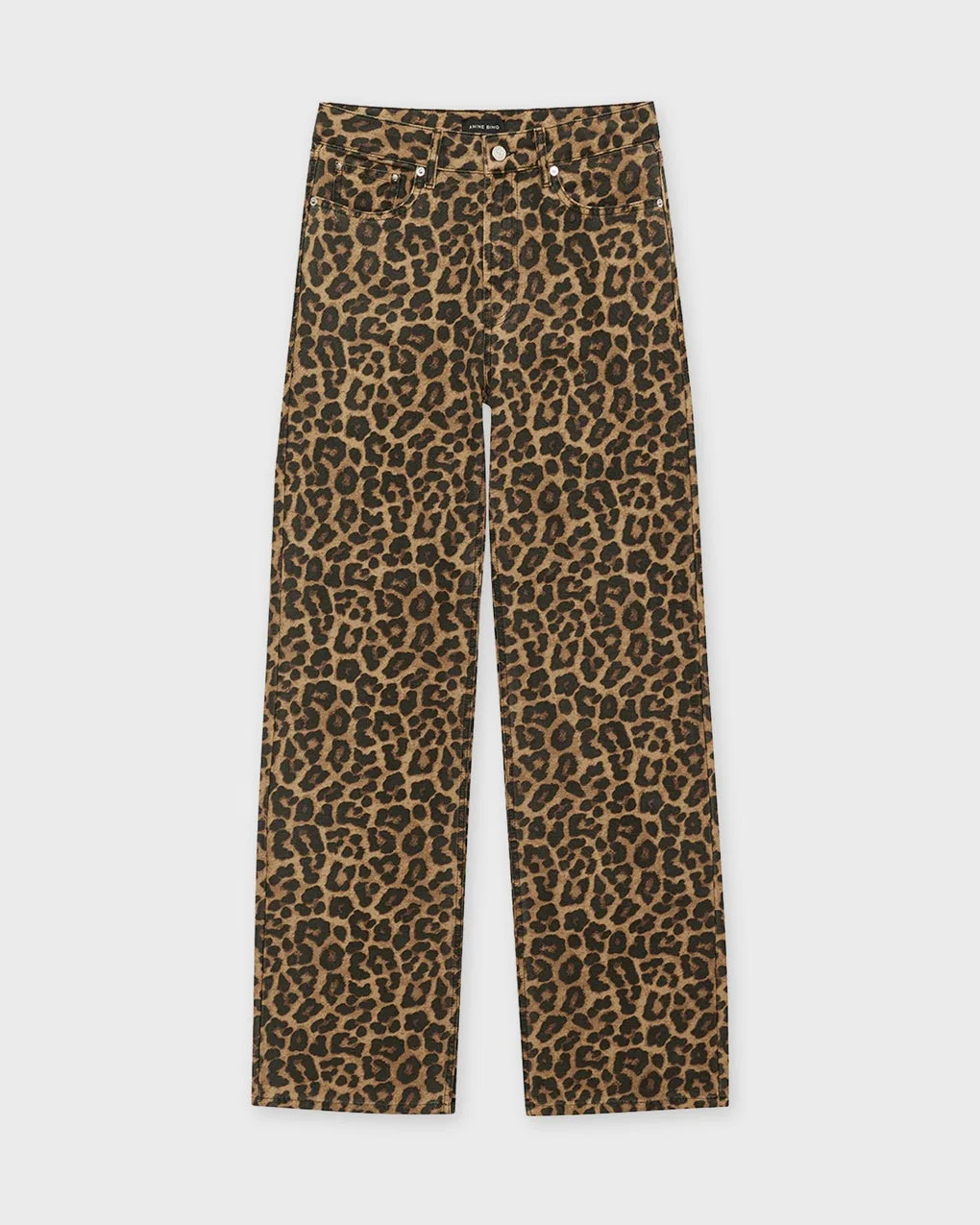Jeans Hugh from Anine Bing. The Hugh Jean offers a relaxed, ’90s-inflected silhouette crafted from mid-weight, rigid organic cotton denim in a vintage-inspired leopard print. Designed to sit low on the hips with a mid rise, the style falls into a wide, elongated leg with a clean-edge hem, finished with a classic button-fly closure for an effortlessly modern attitude. Size and Fit - Fits true to size, choose your usual size - The model is 175 cm tall and is wearing size 26 Specification - Article number - ID: 178000-259 - Brand: Anine Bing - Color: Leopard - Washing Instructions: Machine Wash Separately - Made of: 100% Cotton