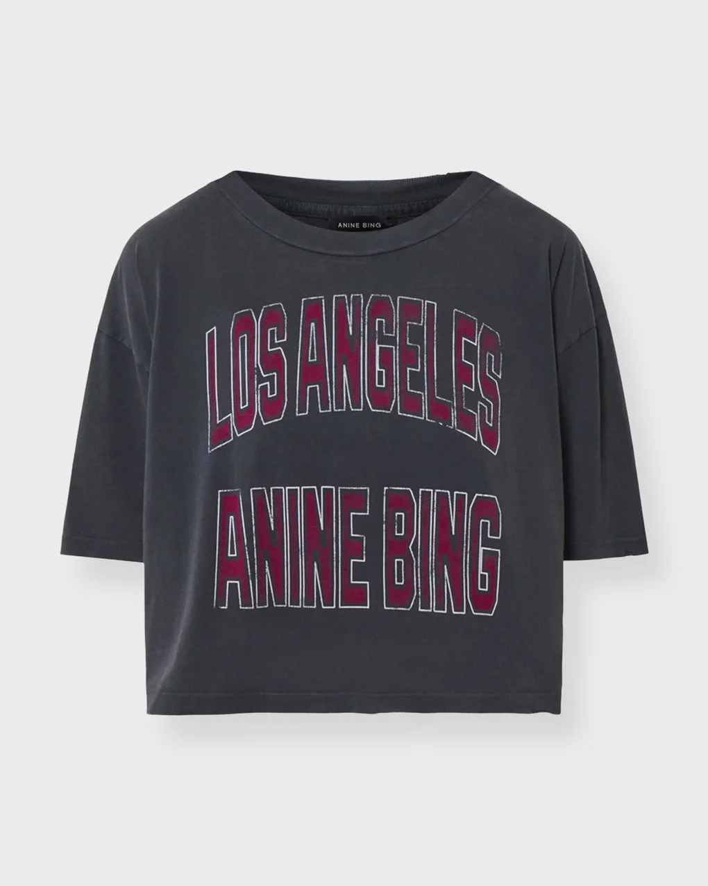 T-shirt Johnny Cropped from Anine Bing. A vintage-inspired cropped tee crafted from a midweight 100% cotton jersey. Designed with a boxy, structured fit and cropped hem. Size and Fit - Fits true to size, choose your usual size - The model is 175 cm tall and is wearing size S Specification - Article number - ID: 177448-523 - Brand: Anine Bing - Color: Washed black - Washing Instructions: Machine Wash Separately - Made of: 100% Cotton