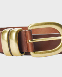 Belt Zoira from By Malene Birger. A timeless belt crafted in leather, this design features a curved buckle. The Zoira belt is finished with metal details, adding a polished and stylish touch to the design. Whether worn with jeans, skirts, or dresses, this versatile belt is a chic addition to your wardrobe, combining classic style with ethical craftsmanship. Size and Fit - Length: 120 cm Specification - Article number - ID: 173753-084 - Brand: By Malene Birger - Color: Dark brown