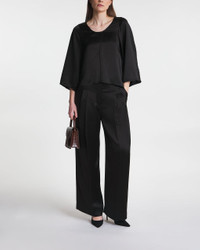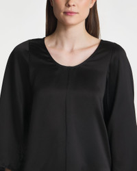 Calyas Blouse from By Malene Birger. An elegant blouse made from a shiny fabric with side slits, equally easy to wear and style. The classic silhouette makes it simple to pair with almost anything in your wardrobe. Designed for a relaxed fit. Size and Fit - Fits true to size, choose your usual size - The model is 176 cm tall and is wearing size 36 Specification - Article number - ID: 174273-000 - Brand: By Malene Birger - Color: Black - Washing Instructions: Delicate machine wash - Made of: 76% acetate, 24% polyester