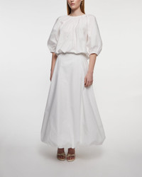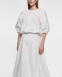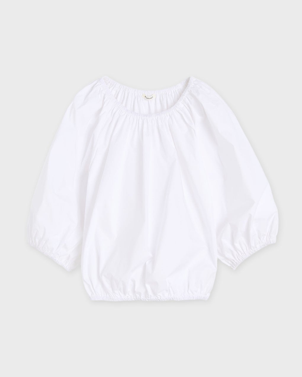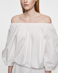 Blouse Lelow from By Malene Birger. Made from crisp organic cotton with a voluminous silhouette. The loose fit is balanced by elastic bands at the neckline, cuffs, and hem, allowing the blouse to be worn both on and off the shoulders depending on your mood. Size and Fit - Fits true to size, choose your usual size - The model is 172 cm tall and is wearing size 36 Specification - Article number - ID: 176055-010 - Brand: By Malene Birger - Color: White - Washing Instructions: Machine wash - Made of: 100% cotton organic