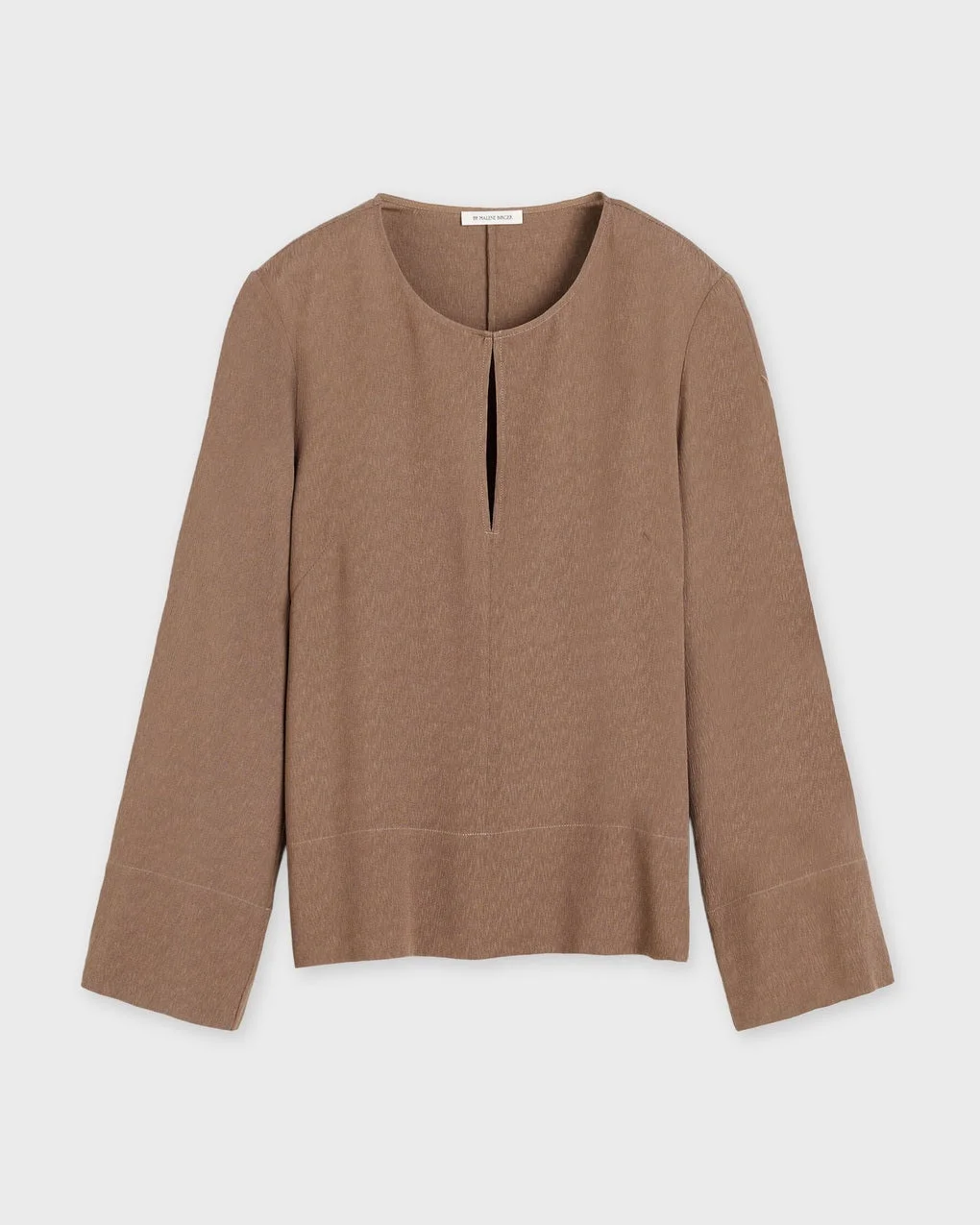 Blouse Malukka from By Malene Birger. The Malukka blouse features a minimalist design with a straight silhouette, a low cut-out neckline, hook-and-eye closure, and side slits, creating a modern and elegant look. Easy to style, it pairs perfectly with the matching Lucee trousers. The blouse has a regular fit and is made from LENZING™ ECOVERO™ viscose fibers, a sustainable material that is soft and comfortable to wear. Size and Fit - Fits true to size, choose your usual size - The model is 175 cm tall and is wearing size 36 Specification - Article number - ID: 177356-950 - Brand: By Malene Birger - Color: Chocolate - Washing Instructions: Hand wash - Made of: 65% viscose (lenzing (TM) ecovero (TM) ), 35% viscose