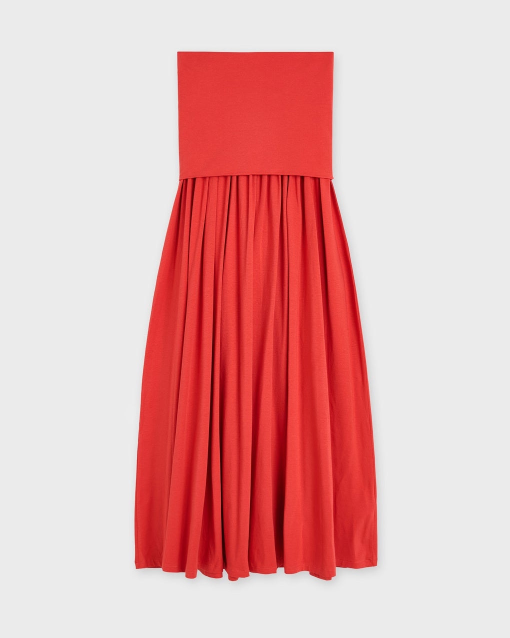 Dress Marciella from By Malene Birger. An elegant maxi dress in organic cotton, perfect as a summer dress or a refined everyday piece for the warmer days of the season. The fitted bodice contrasts beautifully with the voluminous, flowing skirt, creating a sophisticated and feminine silhouette. A sustainable choice from the W Sustain collection, thanks to its environmentally friendly material. Size and Fit - Fits true to size, choose your usual size - Modellen ar 172 cm lang och bar storlek 36 Specification - Article number - ID: 176045-040 - Brand: By Malene Birger - Color: Red - Washing Instructions: Machine wash - Made of: 92% organic cotton, 8% elastane