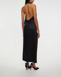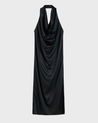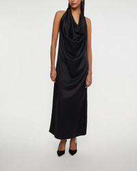Maxi Dress Charmie from By Malene Birger. An elegant dress crafted from a soft satin blend that beautifully drapes over the body, creating a sense of refined sensuality. The dress features a draped halterneck that flows into a deep neckline and a low-cut back, making it perfect for evening occasions. The straight maxi silhouette is completed with a subtle side slit for added movement and sophistication. Size and Fit - Fits true to size, choose your usual size Specification - Article number - ID: 176483-000 - Brand: By Malene Birger - Color: Black - Washing Instructions: Machine wash - Made of: 85% acetate, 15% polyester