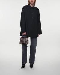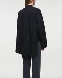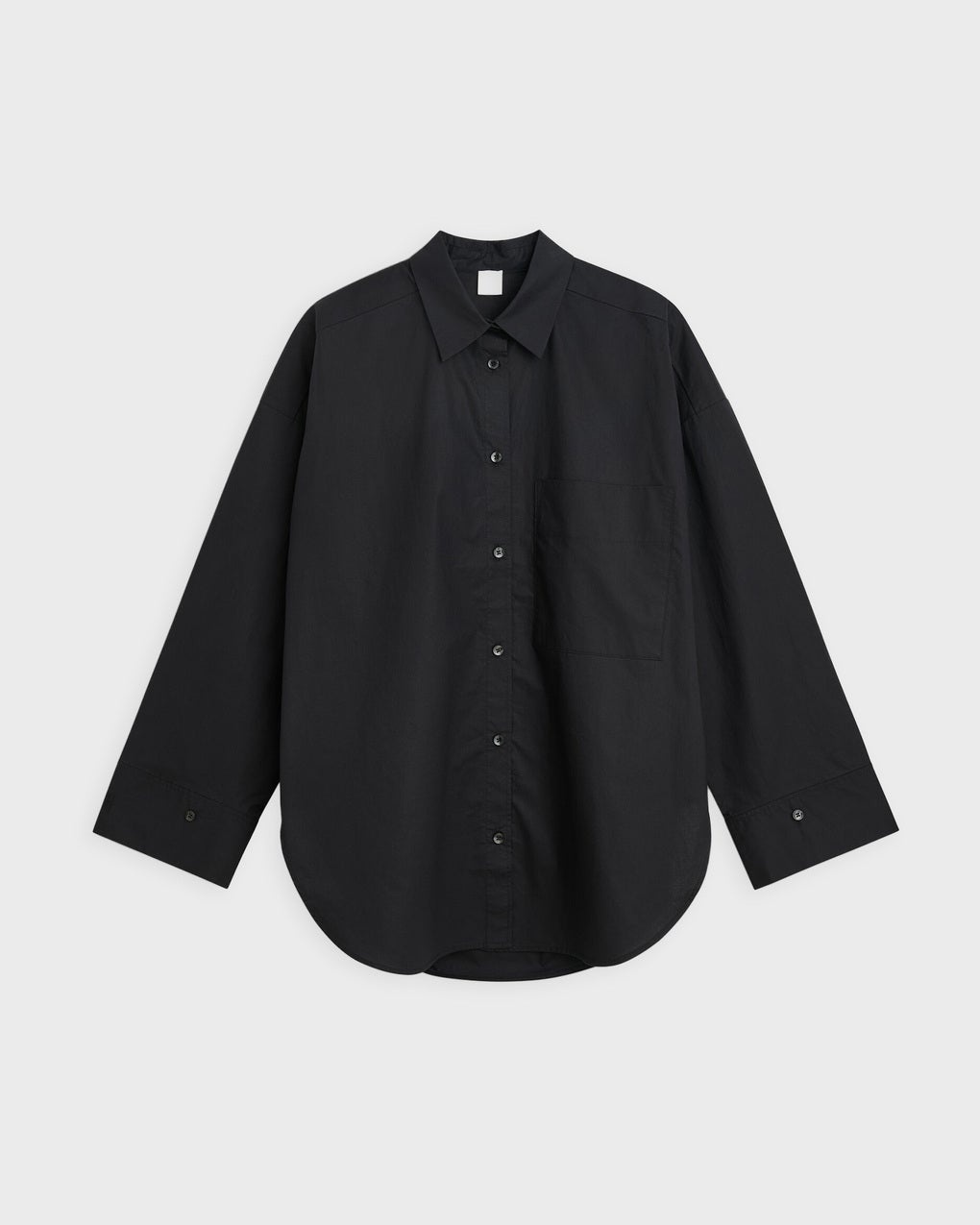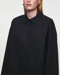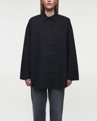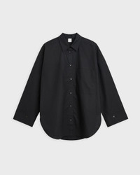 Derris Shirt from By Malene Birger. A classic shirt made from soft organic cotton. The shirt has a straight and relaxed fit in a classic design. It features buttons down the front with a classic collar, as well as a slightly oversized fit with a rounded hem at the bottom. The shirt has a decorative patch pocket on one side of the chest. This product belongs to the W Sustain category as it is made from sustainable materials. Size and Fit - Fits true to size, choose your usual size - The model is 172 cm tall and is wearing size 36 Specification - Article number - ID: 175173-000 - Brand: By Malene Birger - Color: Black - Washing Instructions: Machine wash - Made of: 100% Organic Cotton