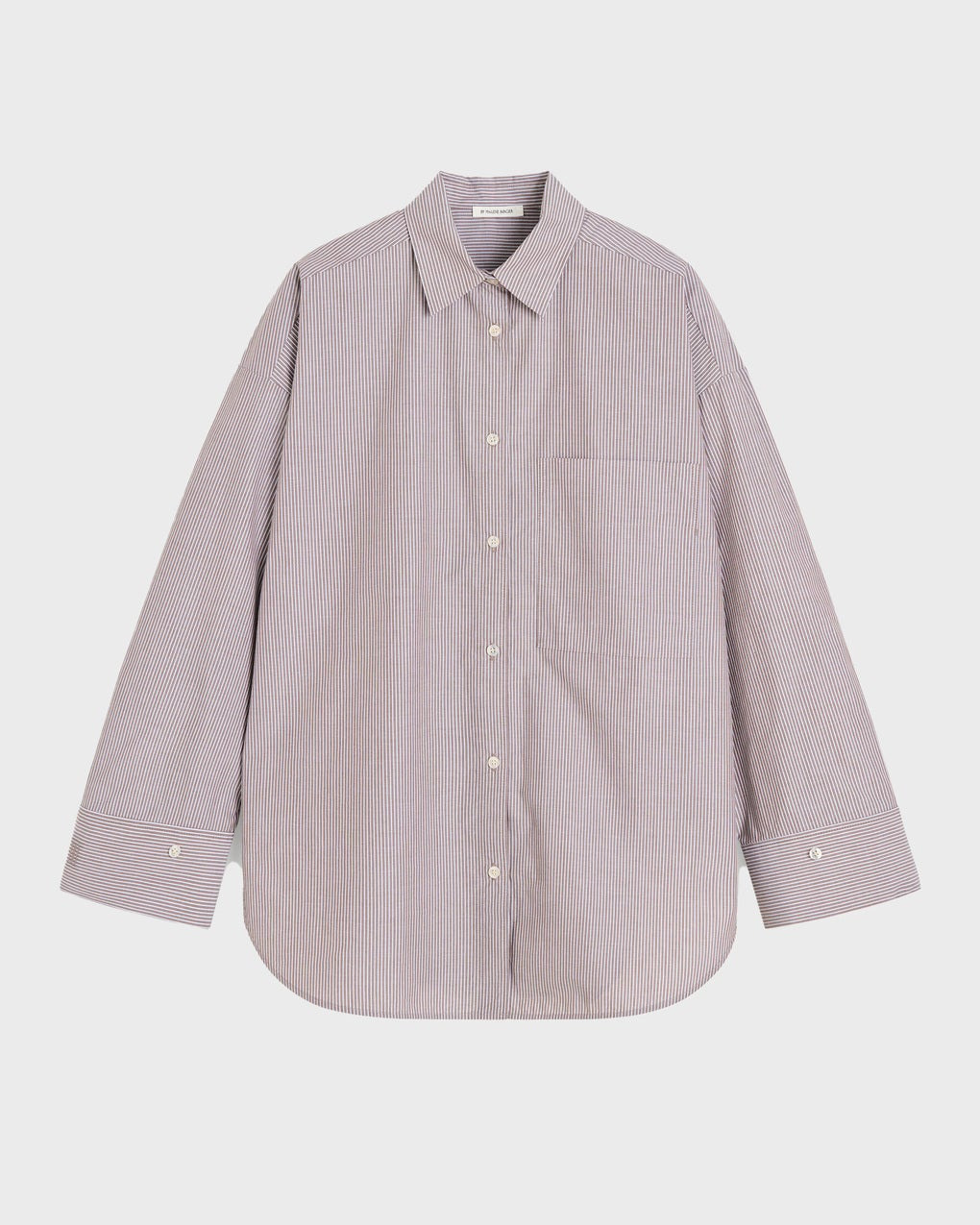 Derris shirt from By Malene Birger. A timeless wardrobe classic made from 100% organic cotton. Featuring an oversized fit, classic shirt collar, front button closure, and chest pocket, it offers a relaxed yet sophisticated look. The curved hem and dropped shoulders give the shirt a modern silhouette. This product is part of the W Sustain category as it is made from sustainable materials. Size and Fit - Fits true to size, choose your usual size Specification - Article number - ID: 176474-083 - Brand: By Malene Birger - Color: Brown - Washing Instructions: Machine wash - Made of: 100% Cotton